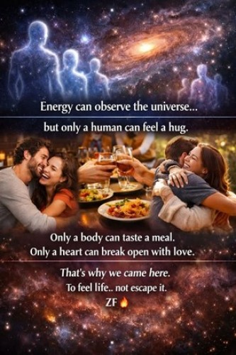 Denn in reiner energetischer Form können wir zwar beobachten, aber nicht so fühlen, wie wir es hier tun. Wir sind in diese Körper gekommen, um das zu erleben, was Energie allein nicht kann. Die Wärme einer Berührung. Den Geschmack von echtem Essen. Das Gefühl der Sonne auf unserem Gesicht nach einem langen Winter. Die Elektrizität der Verbindung mit einer anderen Seele. Die Tiefe der Intimität. Das Lachen, das Bauchschmerzen verursacht. Sogar die Tränen, die uns irgendwie lebendiger fühlen lassen.